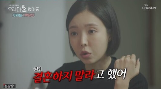 박유선은 "우리 점보러 간 곳 기억나냐. 원진살 처음 얘기했던 곳. 거기 엄청 용한 곳이라더라"라고 입을 열었는데요. 이하늘은 "우리 원진살 처음 얘기한 데? 근데 그 무속인이 우리 이혼한다고는 얘기 안 했었는데"라며 다소 뻘쭘한 표정을 짓기도 했습니다. 박유선은 당시를 회상하며 "하지만 결혼은 하지 말라고 했었다"라고 말했습니다.